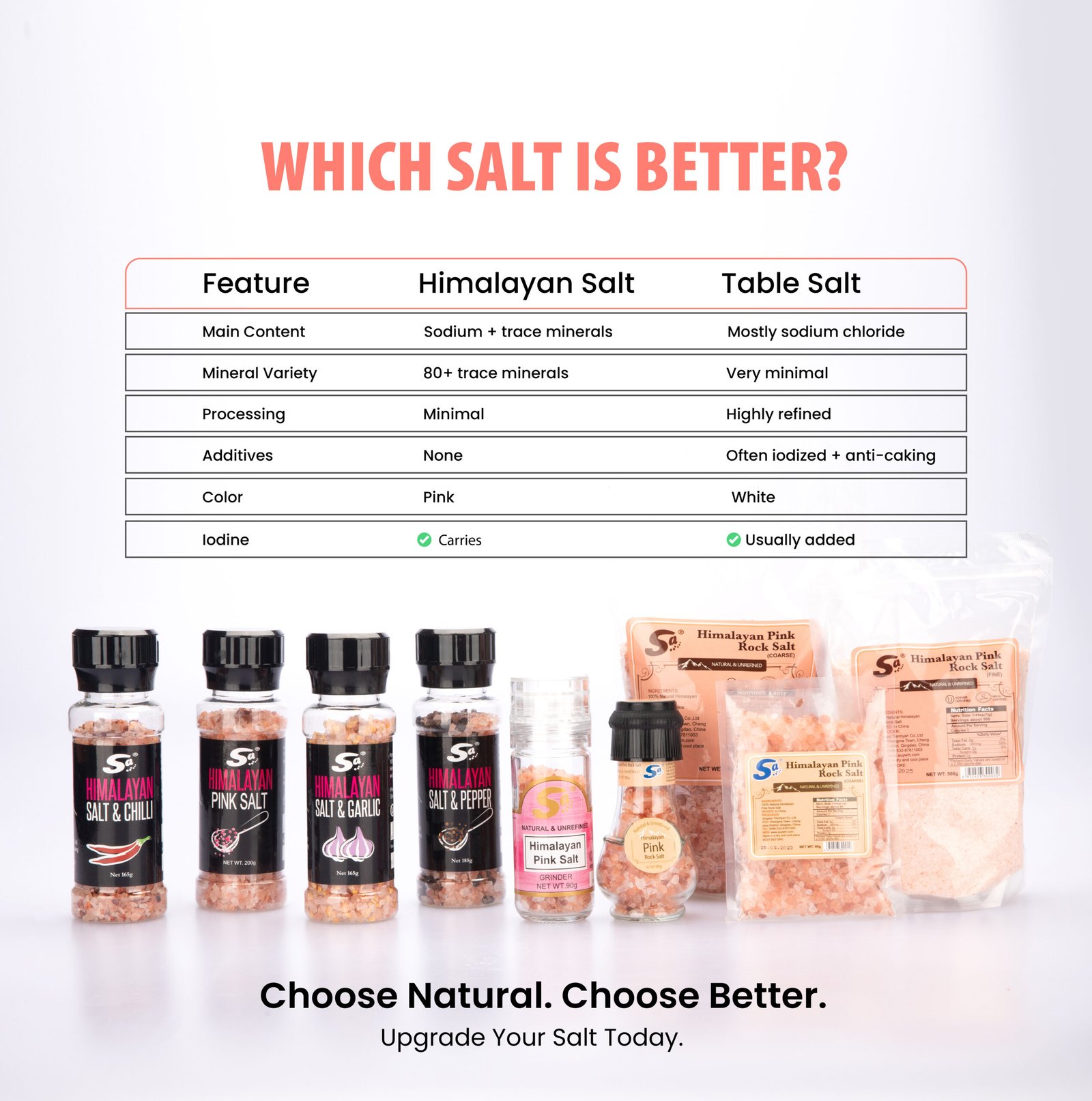 Carefully selected and minimally processed, S.A Pink Himalayan Salt offers a cleaner, more natural way to season your life.
